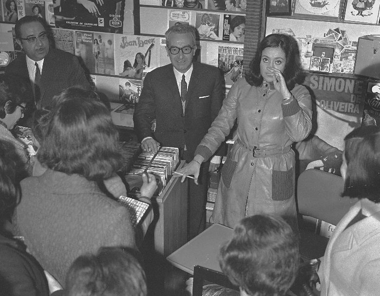 Sessão de autógrafos de Simone de Oliveira na Papelaria Nazareth (secção de discos).