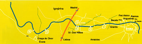 Esta ECOPISTA desenvolve-se desde o bairro do Chafariz d'El Rei, em Évora, até ao limite de concelho, na Sempre Noiva, numa extensão de 21km, tendo depois continuidade nos concelhos de Arraiolos e Mora, numa extensão total de 60km.