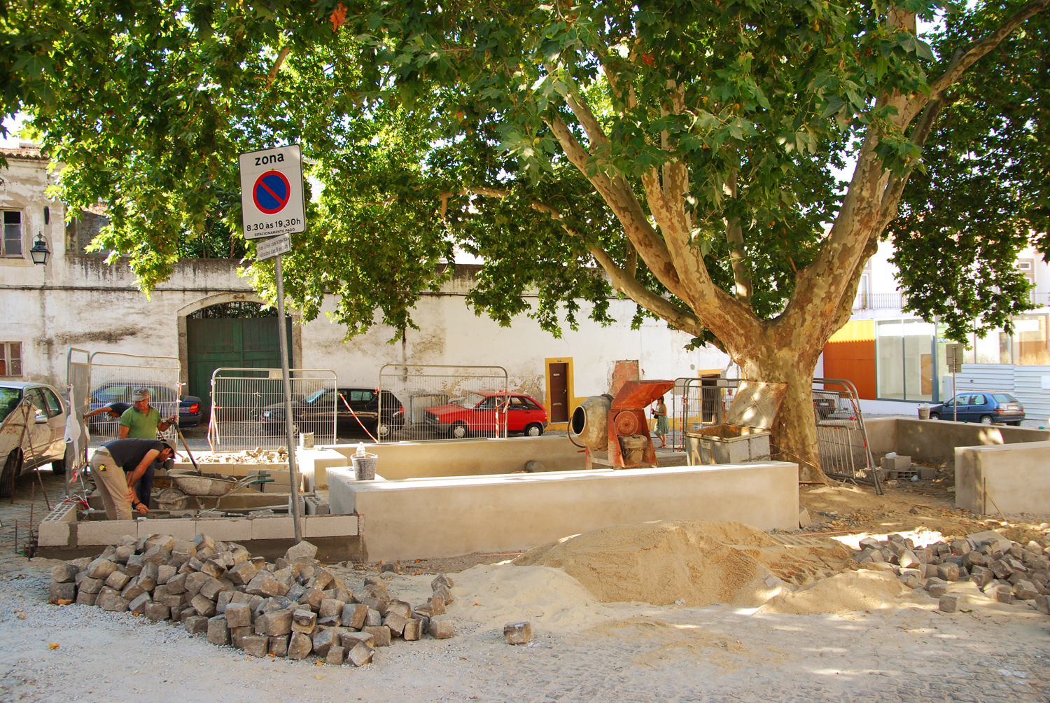 Acautelados os lugares de estacionamento, a intervenção no Largo dos Penedos teve ainda em linha de conta a salvaguarda das raízes do plátano.