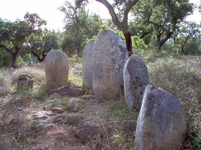 Monumento megalítico classificado como Imóvel de Interesse Público em 1997, foi identificado, em 1966, por Henrique Leonor Pina. Escavações recentes*, promovidas pela Câmara Municipal e dirigidas por Mário Varela Gomes, verificaram um recinto com planta de forma oval, orientado segundo o seu eixo maior no sentido nascente poente, constituído por cerca de trinta menires e medindo 14x11, 5. No seu interior detectou-se uma linha formada por cinco monólitos que marcam o eixo norte-sul, sendo o central de maiores dimensões. No lado nascente, alguns menires continuam o eixo do maior recinto, formando um alinhamento. Os menires, em geral rudemente afeiçoados, apresentam morfologia variada, tendo alguns sido decorados com motivos gravados ou em relevo, nomeadamente: círculos, linhas onduladas, covinhas e báculos. Outros, durante o Neolítico Final, foram aplanados, determinando forma estelar, e decorados com composições antropomorfizantes, em relevo, onde se reconhece uma face e uma lúnula. Tanto a arquitectura deste monumento como a tipologia e decoração dos menires, assim como o espólio exumado, indicam que ele foi edificado e utilizado durante o Neolítico Médio e Final (V e IV milénios a.C.). Todavia, terá sido frequentado, ainda com propósitos de indole mágico-religiosa, em meados do II milénio, conforme documentam os numerosos fragmentos de taças carenadas ali encontrados, talvez depois de um período de abandono ocorrido durante o Calcolítico.